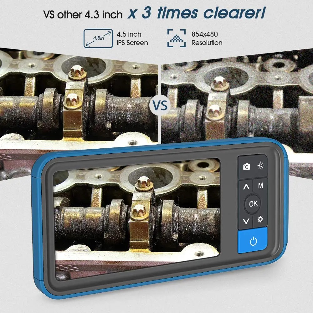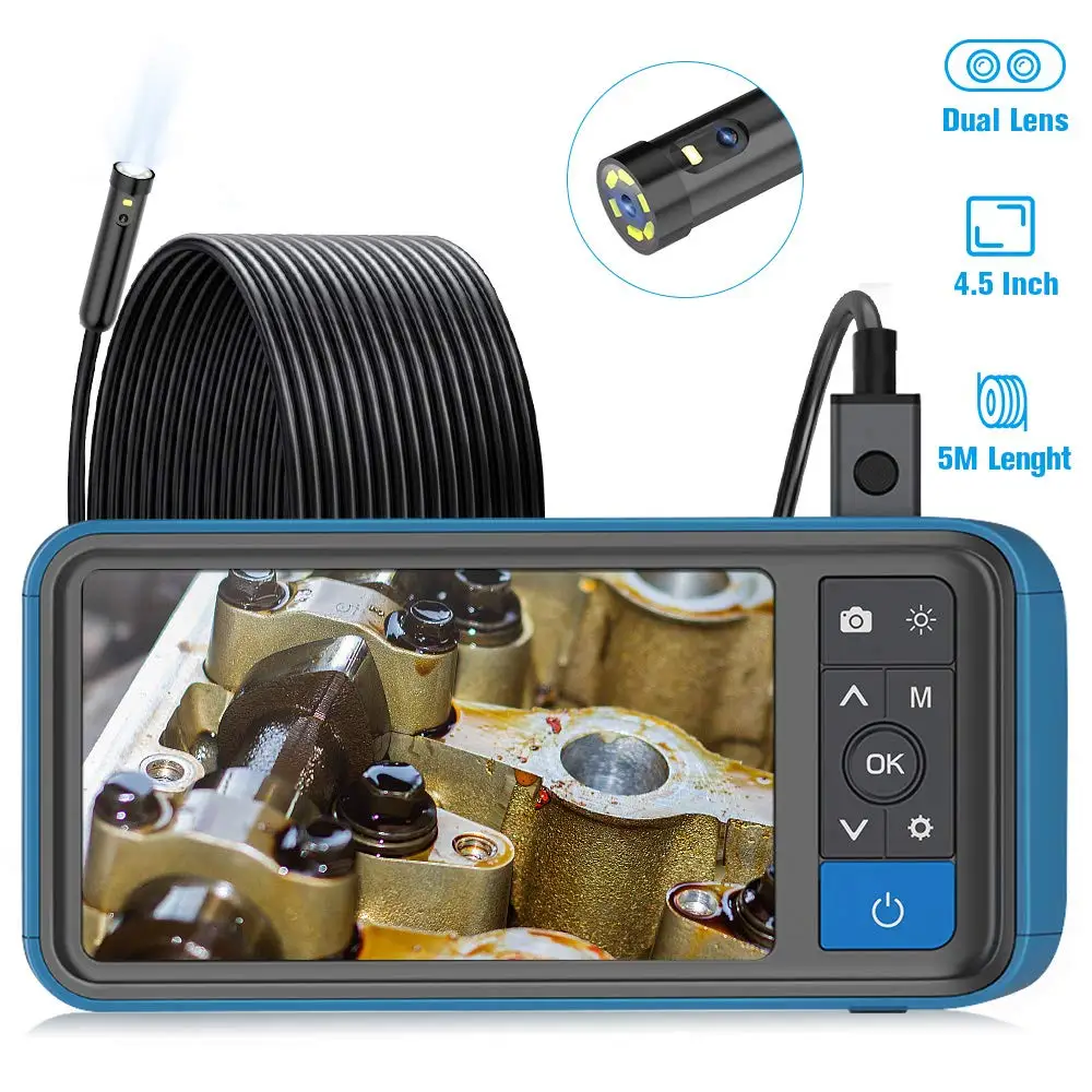 Сочетает в себе 70 ° фронтальной камерой и 70 ° saide камера при температуре не выше 1080x720P кадров в секунду с 6 светодиодный свет, видеорегистратор с двумя камерами промышленный эндоскоп предоставляет вам кадры в кристальной чёткости четкость. Лучшая Инспекционная камера для автоматического обслуживания, механического осмотра, ремонта труб и инспекции канализационных/сливных труб, которая предлагает гораздо лучше проверить для ремонтников и сантехников.