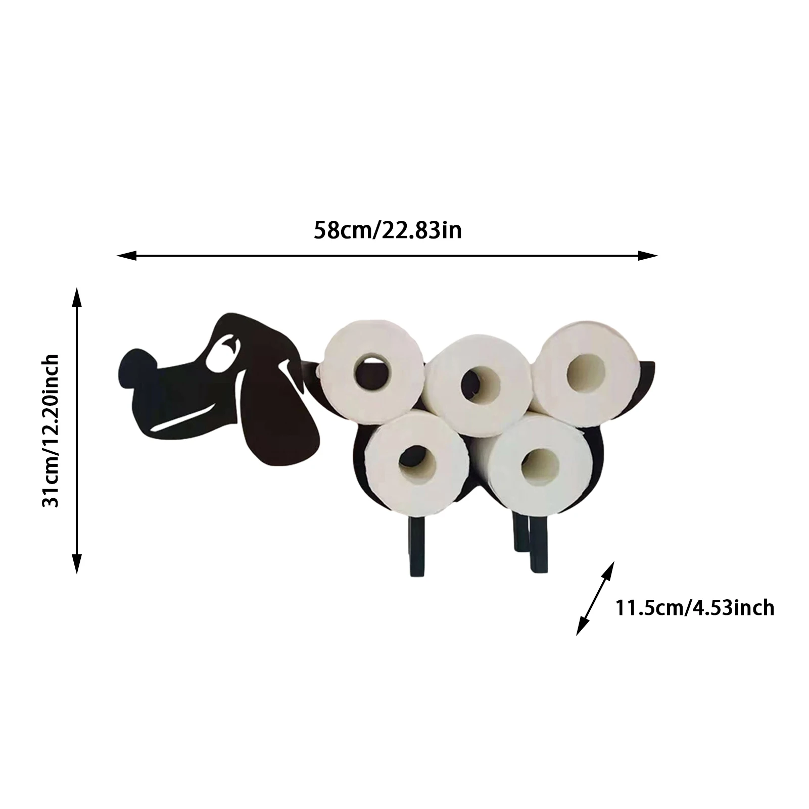 1. Высокая прочность: долговечность. А металлический кронштейн покрыт устойчивым к коррозии, что обеспечивает высокую практичность.2. Добавьте удовольствия: вы устали от наследия отсутствия запасных рулонов туалетной бумаги? Не нужно мириться с держателем для туалетной бумаги в ванной, добавьте удовольствия украшению ванной комнаты!3. Компактный дизайн: может увеличить экономию места. Используйте этот милый держатель для собак, чтобы хранить рулоны туалетной бумаги. Вмещает до 7 томов.4. Простота установки: эта милая стойка хранилище для туалетной бумаги легко устанавливается и не требует сложных инструментов или навыков.5. Для себя или в подарок: Этот Запасной Держатель для рулона туалетной бумаги можно использовать самостоятельно или в качестве подарка своему любимому или другу. Это обязательно покорит их благодарность!Спецификация:Материал: кованое железо и краскаРазмер: около 58*11,5*31 см/22,87*4,53*12,20 дюймаВес: около 1000 гУпаковочный лист:1 * стеллаж для хранения рулонной бумагиПримечание:1. Из-за разницы в оборудовании камеры, яркости светильник и экрана дисплея цвет элемента может немного отличаться от изображения.2. Из-за ручного измерения допускается погрешность в 0,1-2 см.