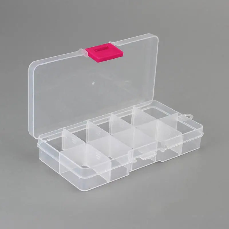 Квадратный прозрачный пластиковый бокс для хранения, 10 слотов, регулируемый чехол для ювелирных изделий, бусин, серег, органайзер, многоячейка