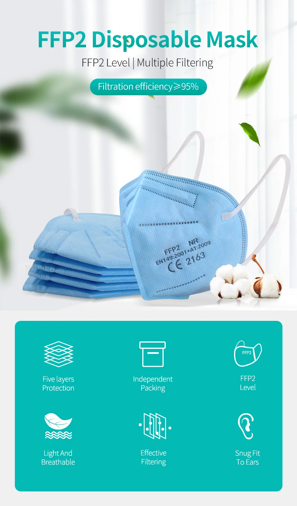 Примечание: на масках ffp2 нанесен логотип «EN149:2001 + A1:2009 CE FFP2 2163 NR», и в посылка есть сертификат CE!Пожалуйста, обратите внимание, что указанный продукт производится и распространяется за рубежом и регулируется законами страны происхождения.