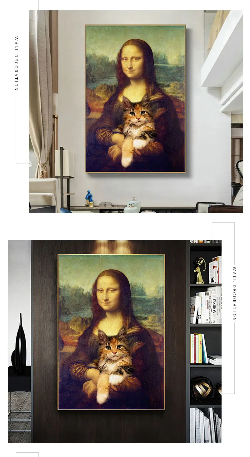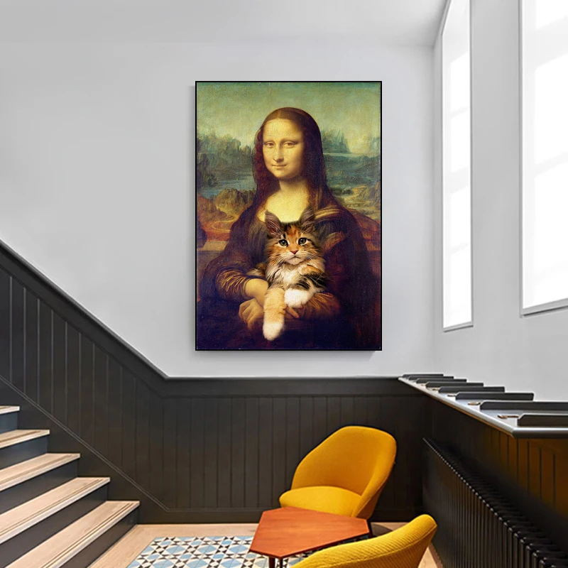Картина маслом Мона Лиза с Котом, классический портрет, Картина на холсте, Настенная картина для дома, художественные плакаты и принты
