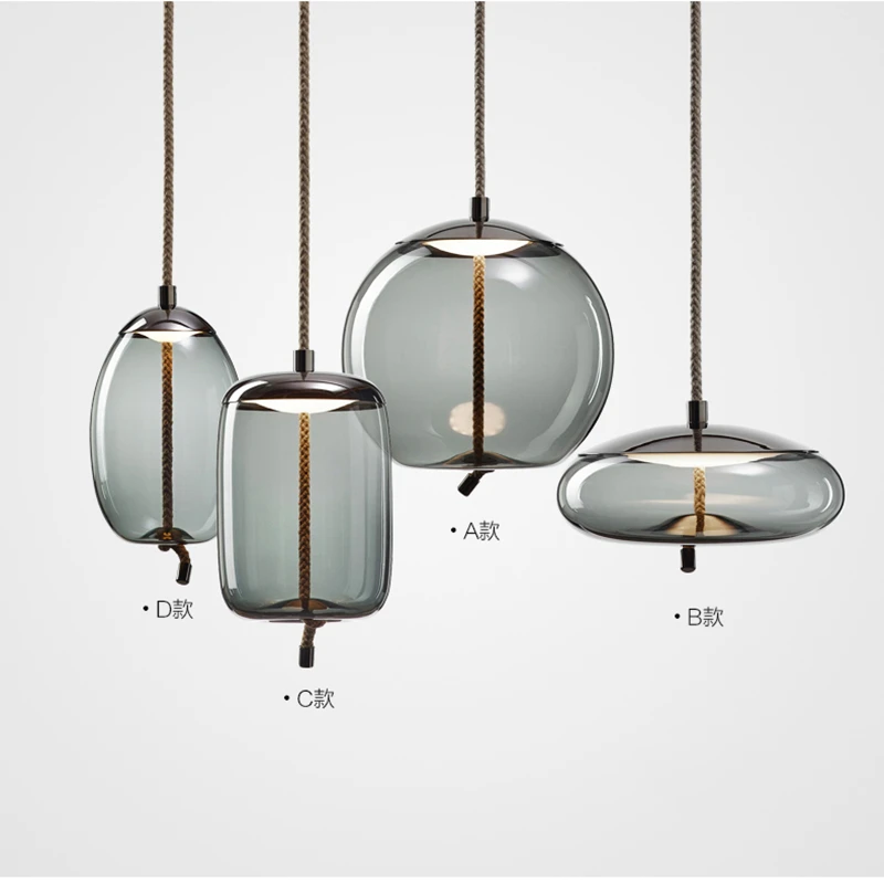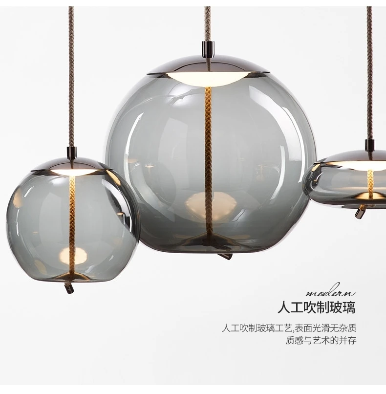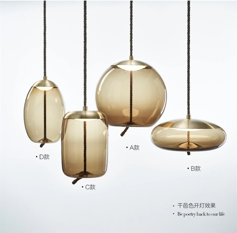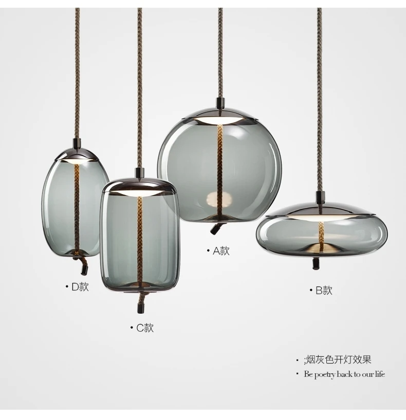 Современные подвесные светильники в скандинавском стиле, дизайнерские стеклянные светодиодные освещения из пеньковой веревки для столовой, спальни, бара, подвесное освещение в стиле лофт