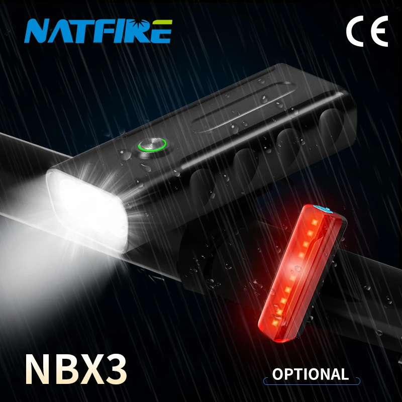 Велосипесветильник светодиодный алюминиевый фонарь NATFIRE, зарядка через USB, задсветильник фонарь, водозащита IPX5, 5200-1200 мАч