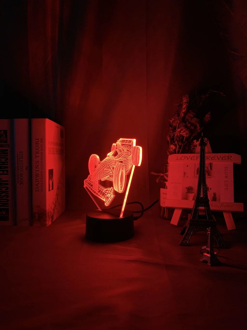 Прохладный F1 Формула 1 гоночный автомобиль 3d иллюзия светодиодный ночной Светильник для ребенка Цвет изменение светильник Настольная лампа Спальня светодиодный ночной Светильник