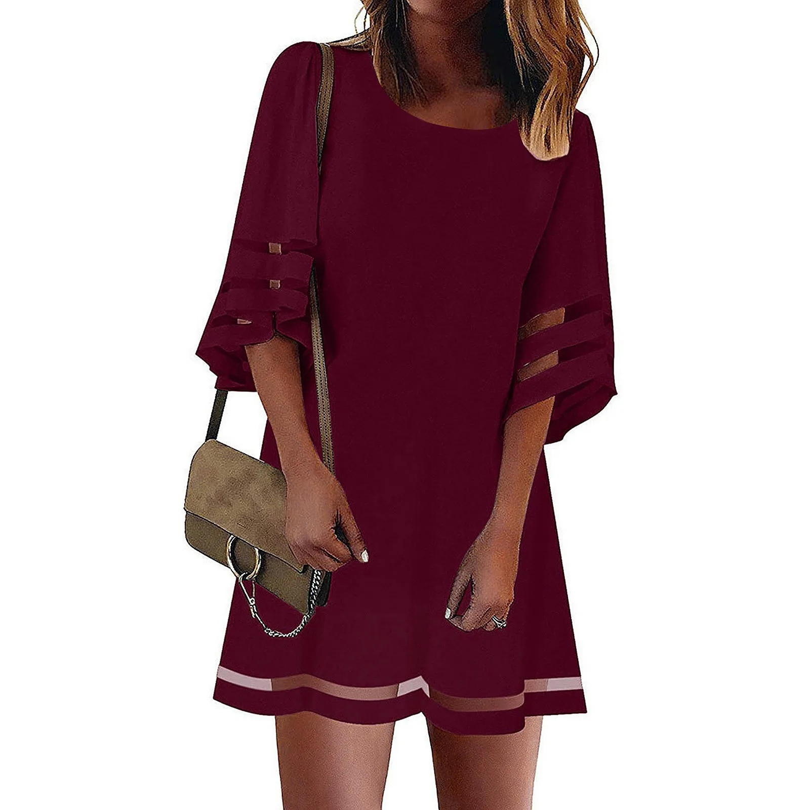 40 # летнее женское платье, черное повседневное Сетчатое платье с круглым вырезом и вставкой 34, Свободный Топ с рукавом-колоколом, платье-рубашка, женские элегантные однотонные платья, платье