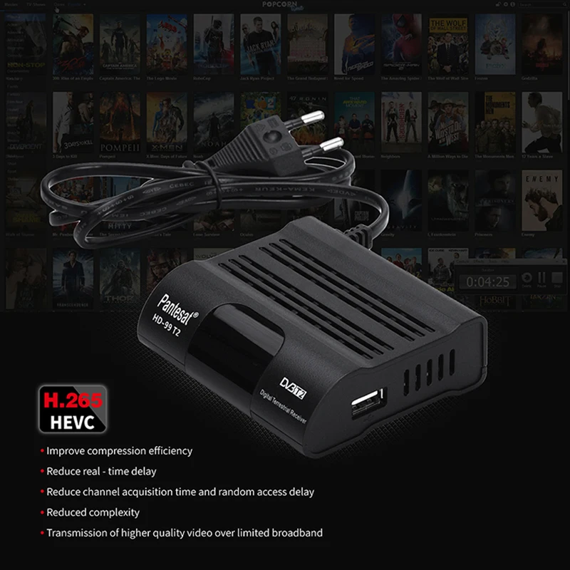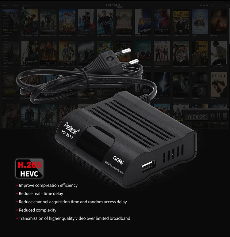 -Поддержка интеллектуального кодирования H.265, Совместимость с H.264, экономия полосы пропускания 50%, более экономичная, четкая, и вы можете смотреть больше HD программ