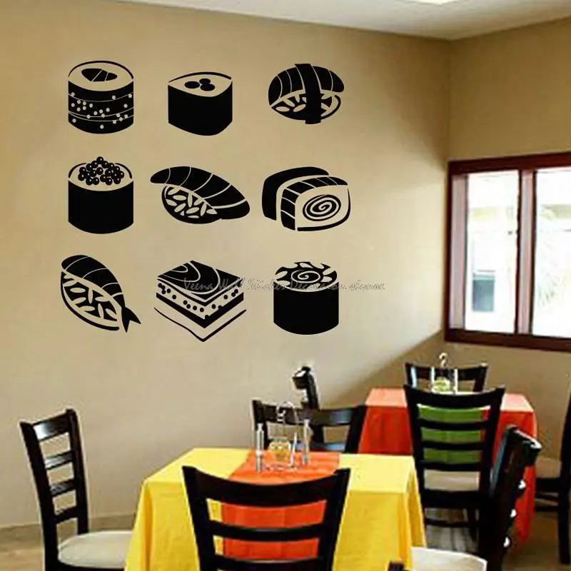 Наклейки на стену для японской кухни, суши, ресторана, кухни, магазина суши, витрины на окна, двери, фотообои 4