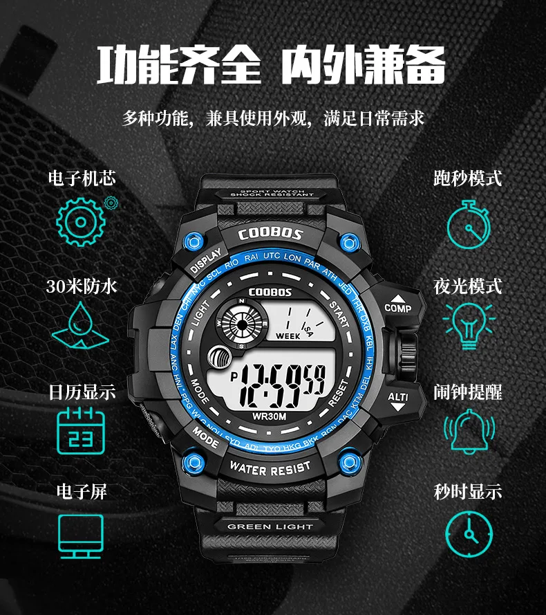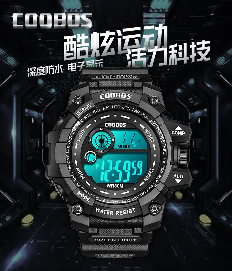 Водонепроницаемые мужские цифровые часы COOBOS, Брендовые спортивны...