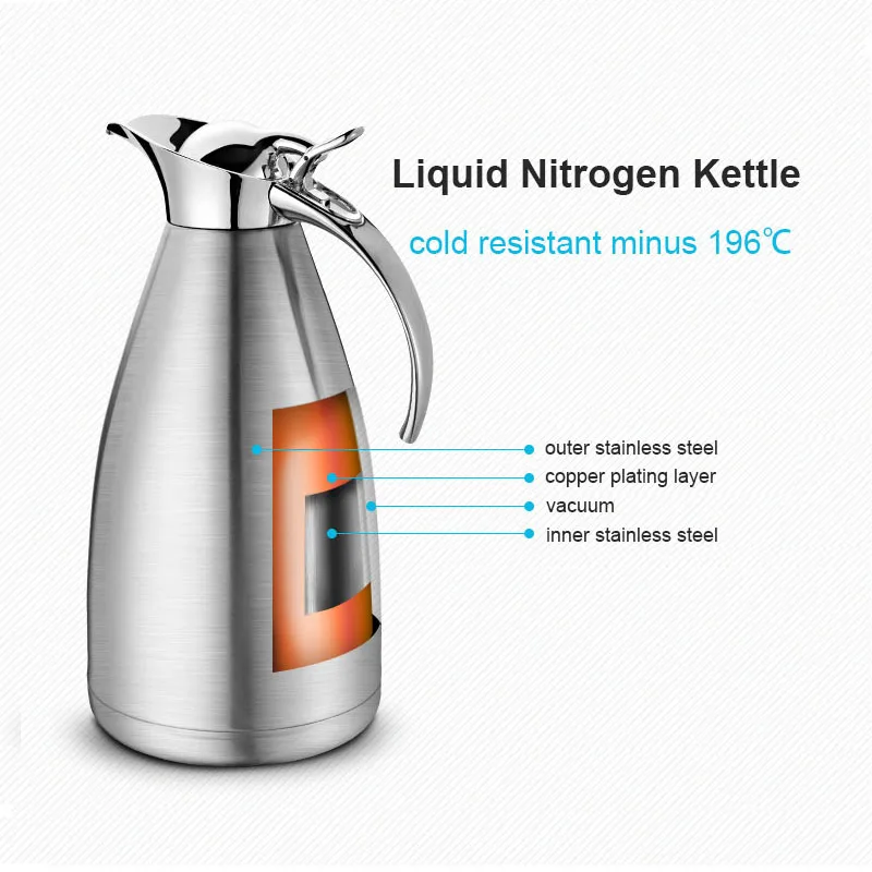 ИспользуйтеВысокая Вакуумная технологияЭффективно предотвращает попадание жидкого азотаИспарение.Корпус кастрюли из нержавеющей стали, ручка из сплава, Отличная функция.Внутренняя подкладка имеетСпециальное антифризное покрытие, Который способенВыдерживаетЖидкий азот-196 градусов по Цельсию, Предотвращает замерзание трещинНержавеющая сталь при ультра-низкой температуре.ПримечаниеЭтот горшок не полностью запечатан. В соответствии со стандартными условиями, около 0,5 кгЖидкий азотИспаряется в течение 4-5 часов. Бутылка жидкого азота может бытьХранится около 12 часов.Этот горшок специально разработан для жидкого азота. Не рекомендуется для того, чтобы бытьИспользуется для других целей, потому что другие вещества повредят специальныйАнтифриз-слой бака!