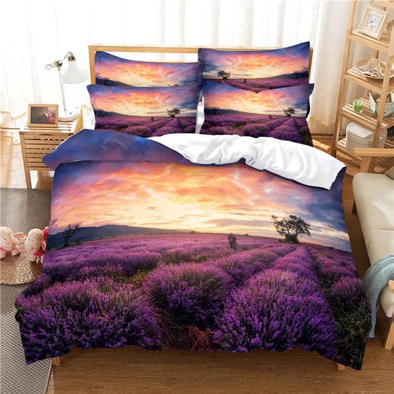 Комплект постельного белья Лаванда, с цифровым 3D-принтом, с пододеяльником, Королевский размер, модный дизайн