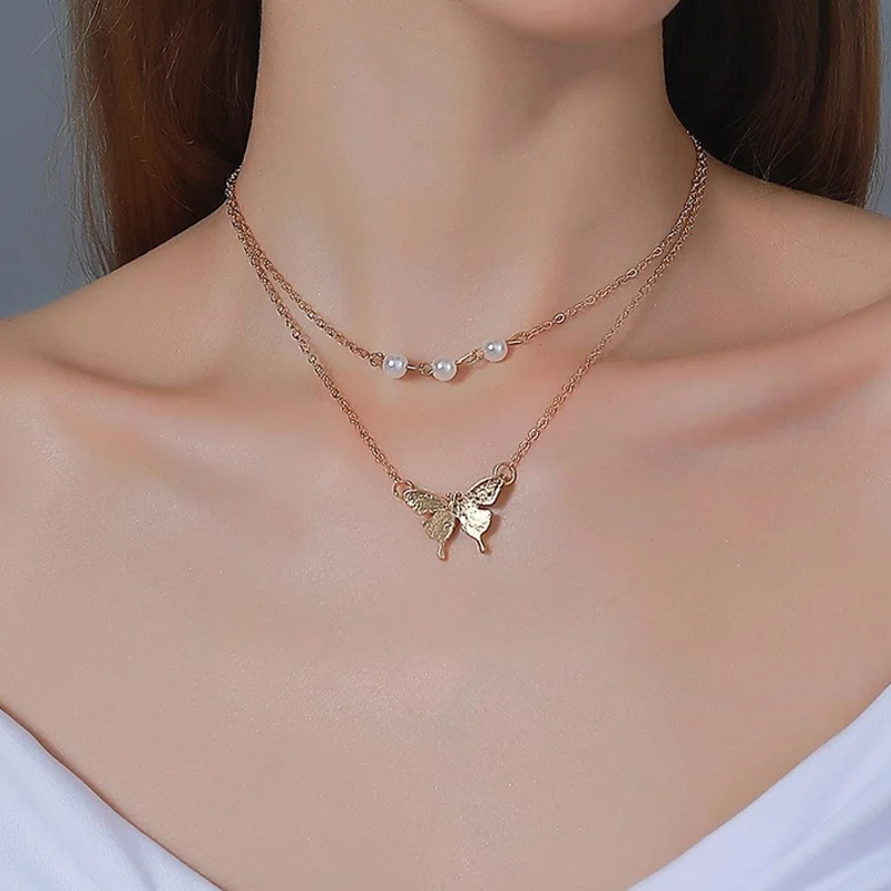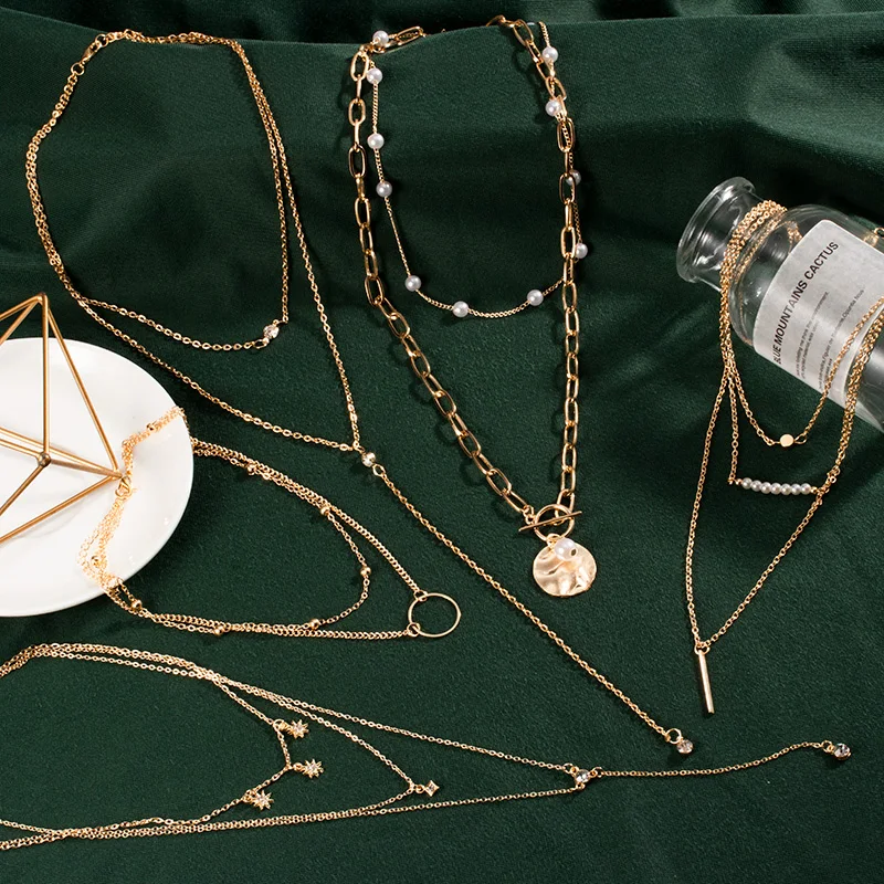 Цепочка-колье Многослойная Женская, ожерелье из нержавеющей стали с жемчугом и подвеской под золото 2021 пробы, модное Ювелирное Украшение для женщин
