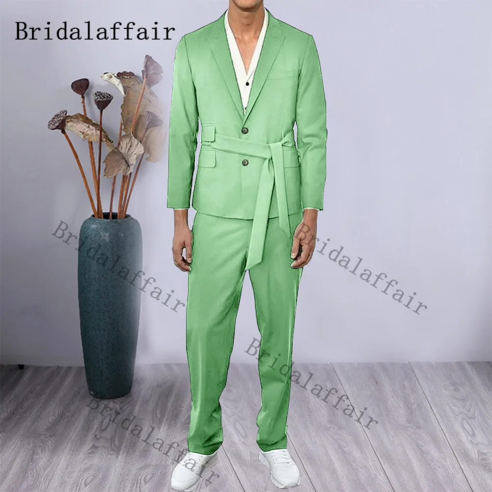 Брендовый светло-зеленый мужской костюм Bridalaffair, приталенный пояс для жениха, зеленый приталенный официальный смокинг для свадебного платья, мужской блейзер