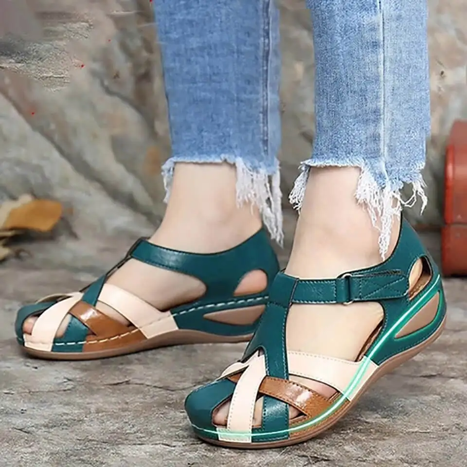 Новинка лета 2021, женские сандалии в стиле ретро с вырезами, сандалии на большой танкетке и мягкой подошве, женские сандалии из искусственной кожи