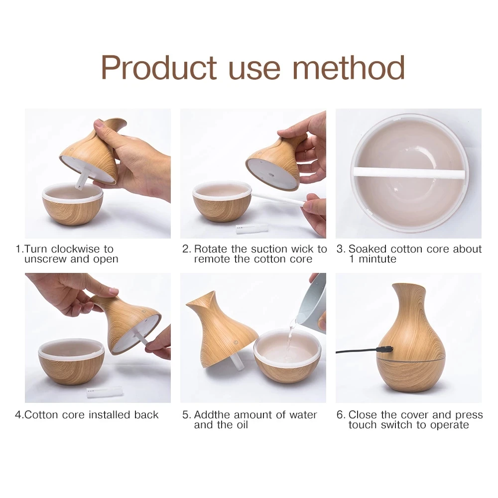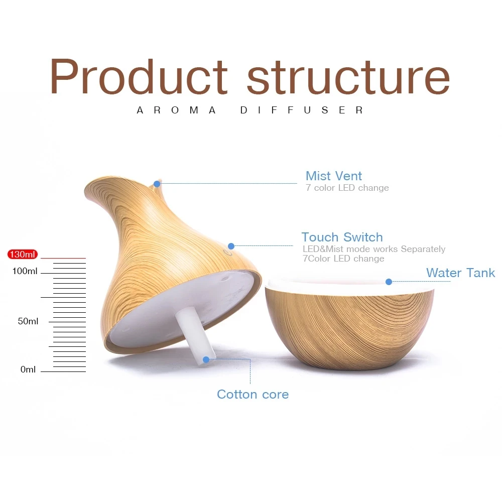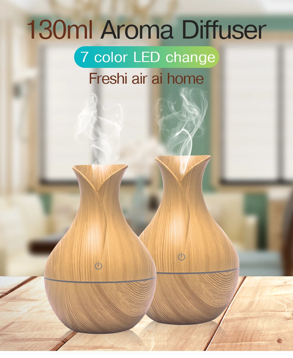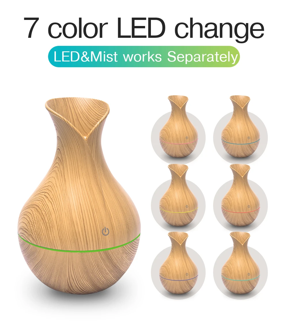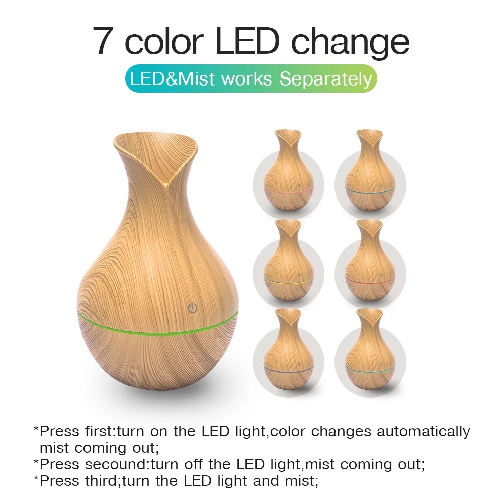 Миниатюрный увлажнитель воздуха с USB, Электрический аромадиффузор, эфирное масло, древесина, зернистость, ультразвуковой, холодный туман светодиодный светильник ка для дома, офиса, автомобиля