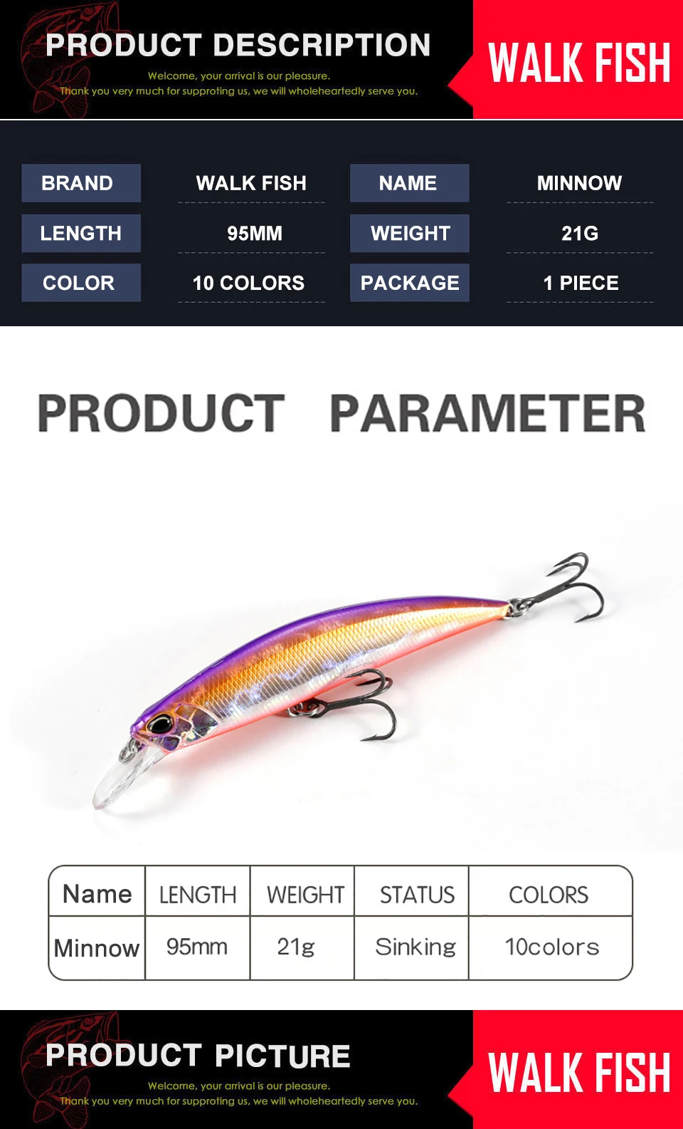 Новый продукт 95 мм 21 г Гольян рыболовные Тонущая приманка жесткая...