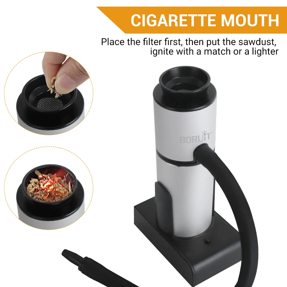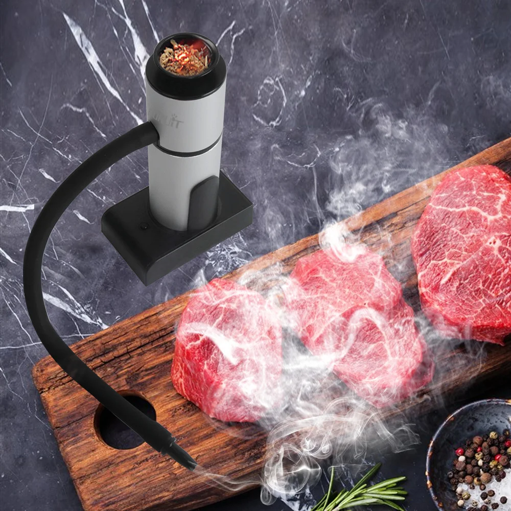 Шаг 1. Положите еду в контейнерШаг 2. Закройте контейнер и вставьте курительную трубкуШаг 3. Добавьте курильщика к Курильщику и нажмите кнопку питанияШаг 4. Светильник порошка дыма и заполняет контейнер дымомШаг 5. После курения в течение определенного периода времени выньте трубку, закройте контейнер и подождите, пока дым осядет, затем курить можно будет завершить