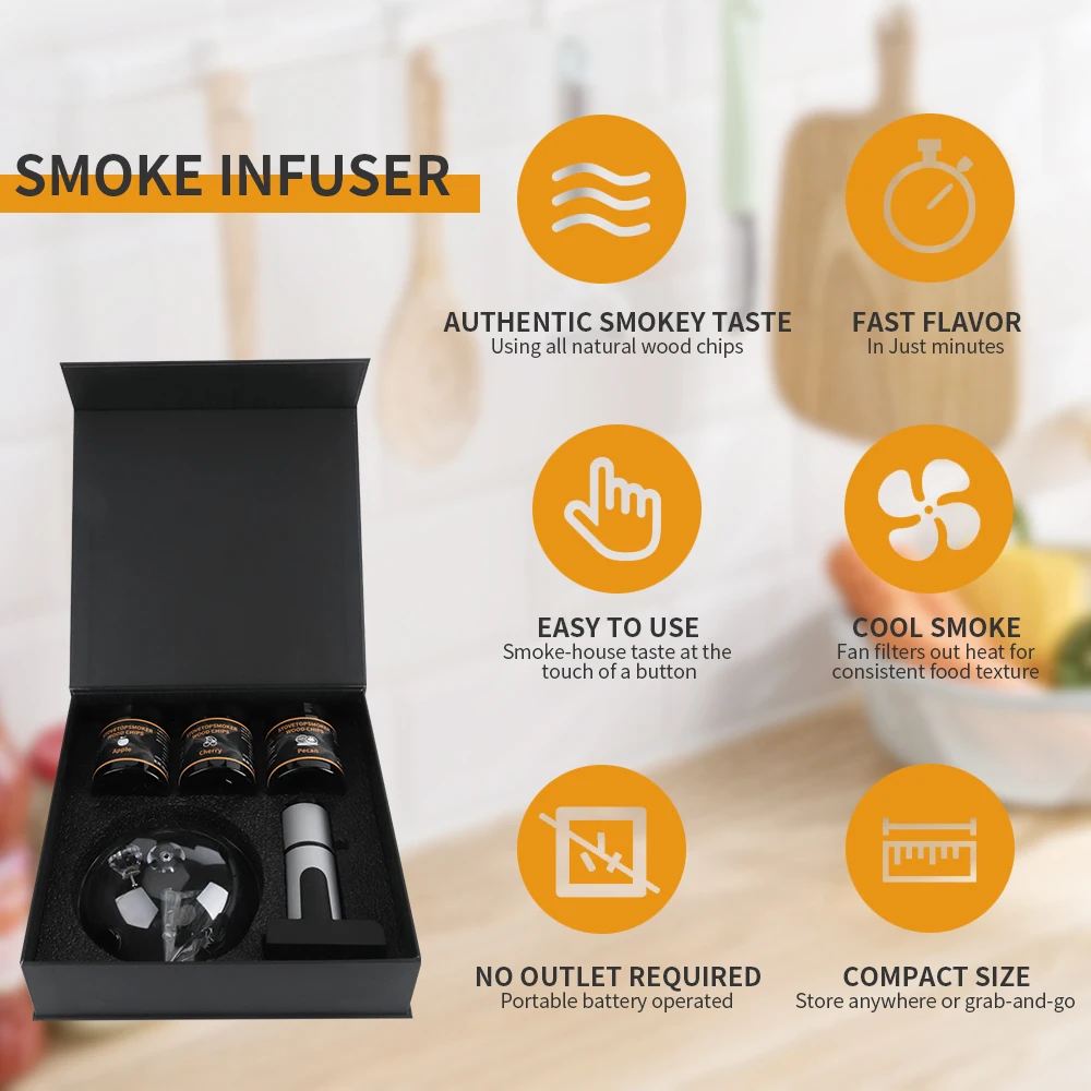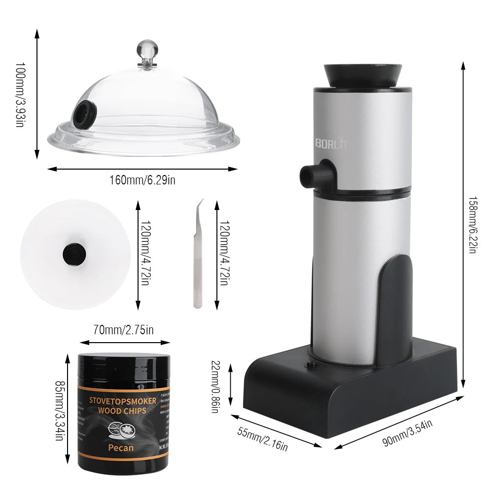 1 * курильщик1 * дымовая вытяжка3 * опилки1 * Коктейльная Дымчатая крышка1 упаковка аксессуаров