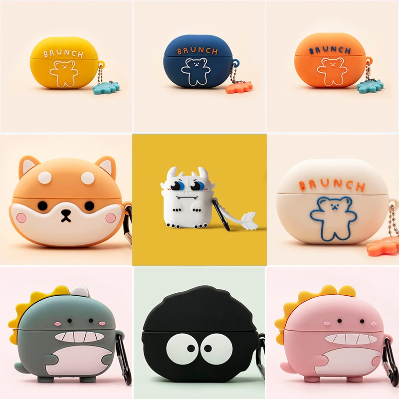 Чехол fundas для Huawei Freebuds 4i, забавный мультяшный чехол с собакойдинозавроммедведем, нескользящий Силиконовый чехол для наушников с крючком