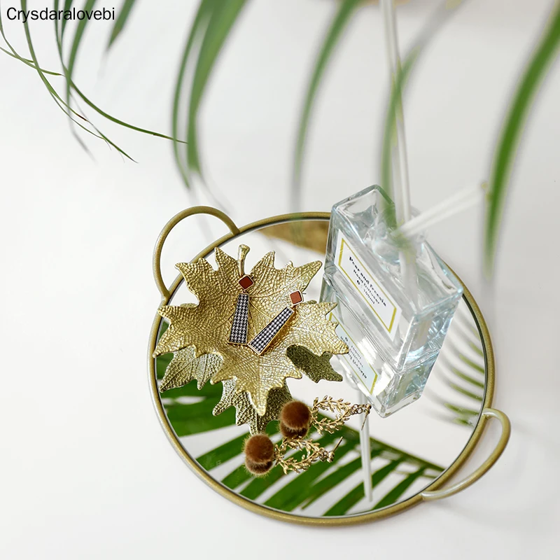 Круглый латунный поднос для хранения стеклянных зеркал, косметический поднос для украшения дома, стеклянные поддоны для закусок, десерт, реквизит для фотографий