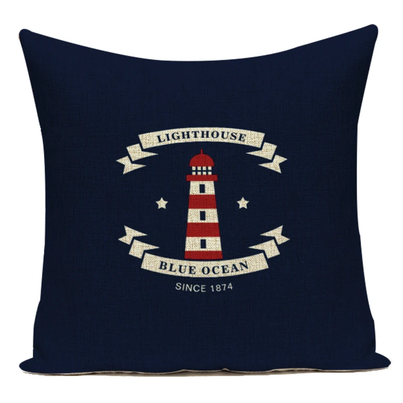 Наволочка из хлопка и льна, с изображением маяков, для дивана