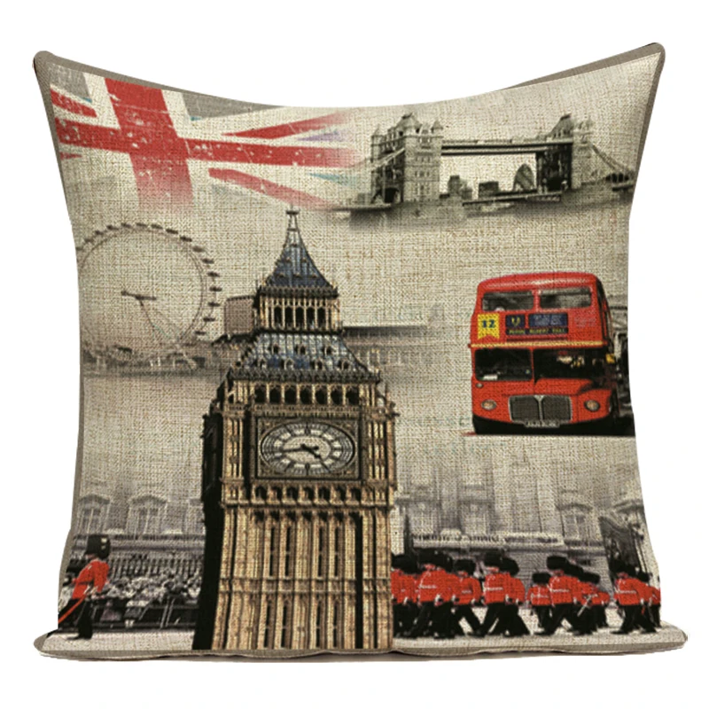Винтаж Подушка Я люблю Лондон Чехлы Башня Биг-Бен Подушка Чехол Открытый украшение дома из полиэстера с Эйфелевой башней и обложки подушки для дивана автомобиля