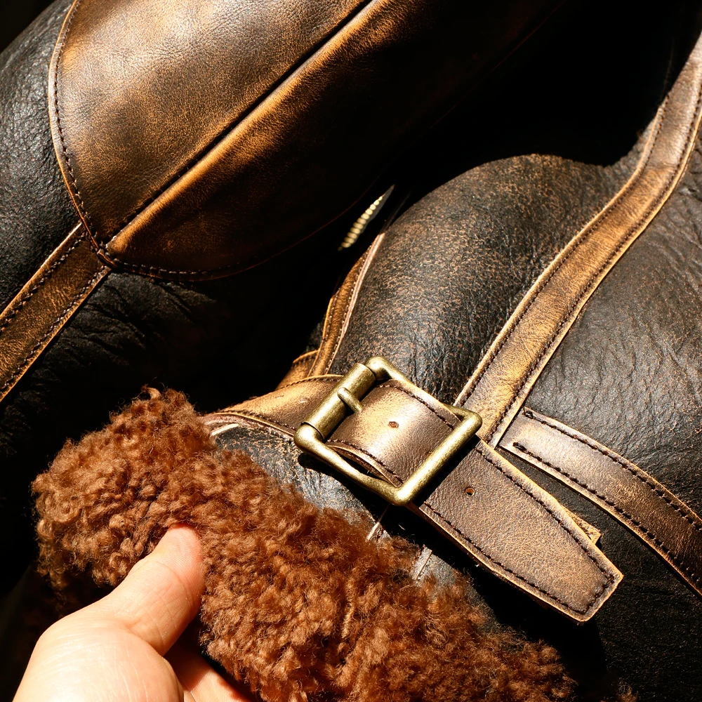 Мужская куртка из овечьей кожи CDJ-116 Cidu, теплая куртка-бомбер из натуральной овечьей кожи в стиле милитари, большие размеры B3