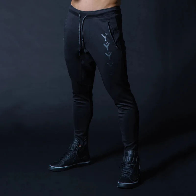 Брюки мужские эластичные для бега, спортивные штаны для бега, фитнеса, чистого хлопка, повседневные тренировочные штаны, черные, весна-осень