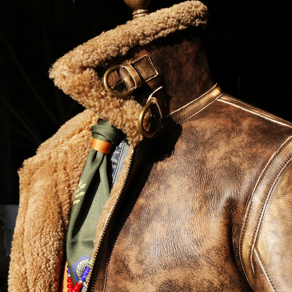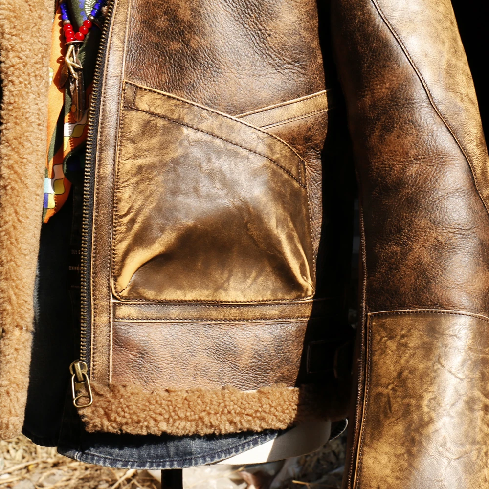 Мужская куртка-бомбер из натуральной овечьей кожи, теплая меховая куртка большого размера в стиле милитари, CDJ-107, европейские и американские размеры, B3