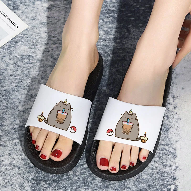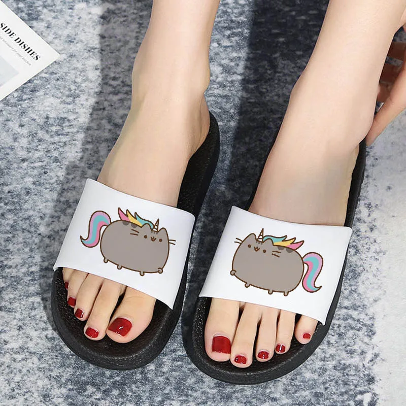 Шлепанцы женские с мультяшным принтом кота, повседневные сандалии, ...