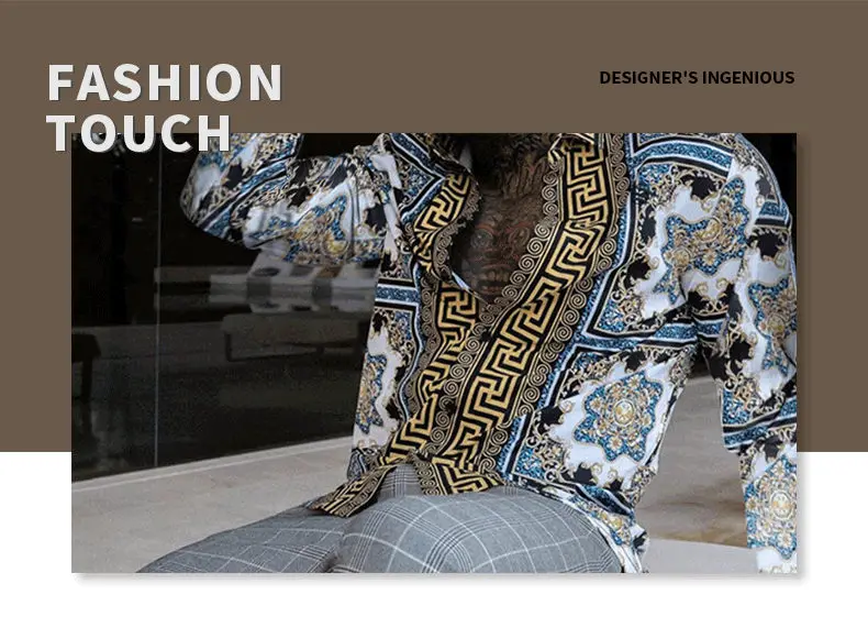 Мужская винтажная рубашка с отложным воротником, однобортная Повседневная рубашка с длинным рукавом и этническим принтом, новинка 2021