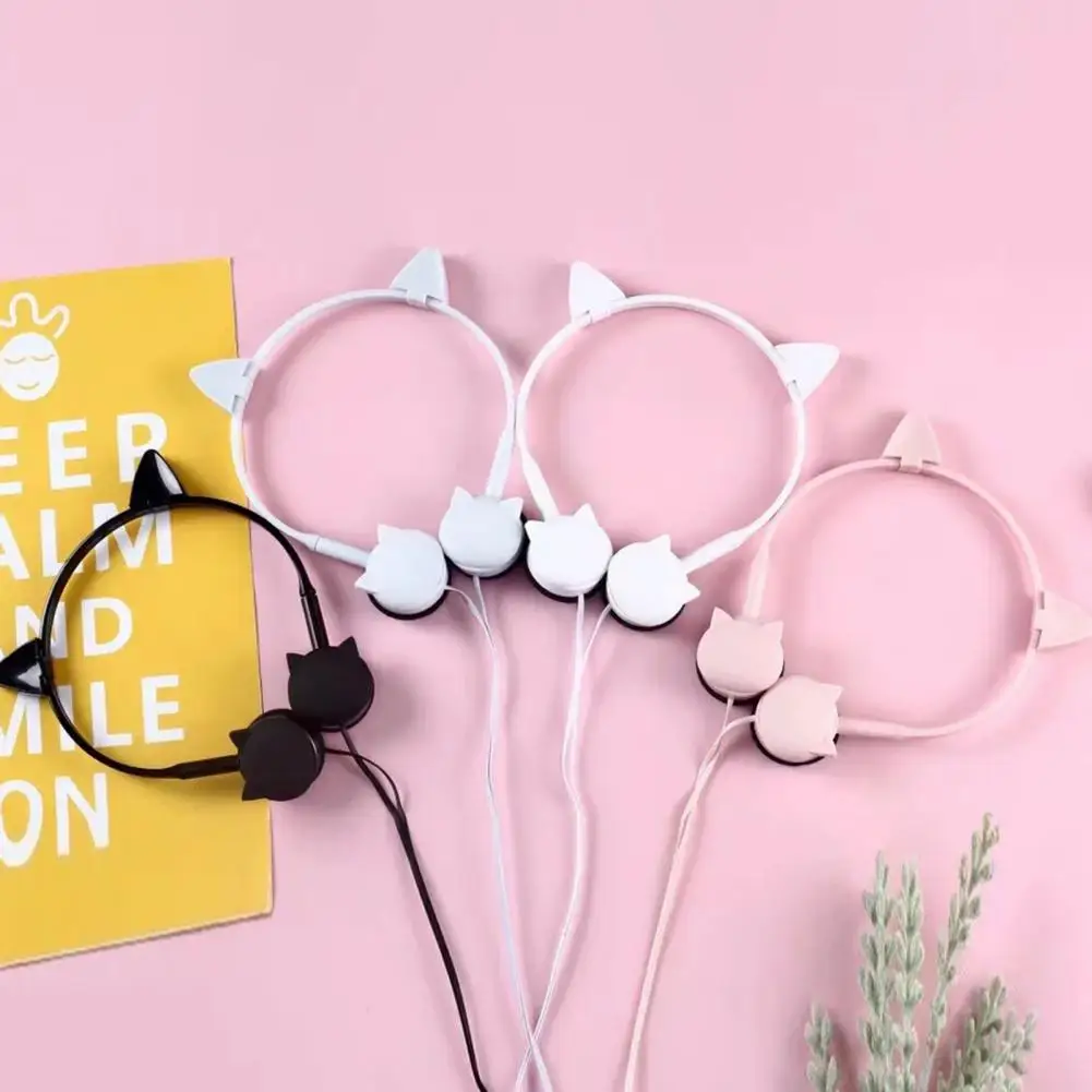 3,5 мм Проводные симпатичные наушники в форме кошачьих ушей с микрофоном, музыкальная гарнитура для телефона, шумоподавляющие наушники