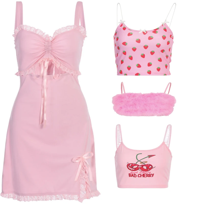 Женская майка на бретельках Y2K, розовая, повседневная, летняя, 2021