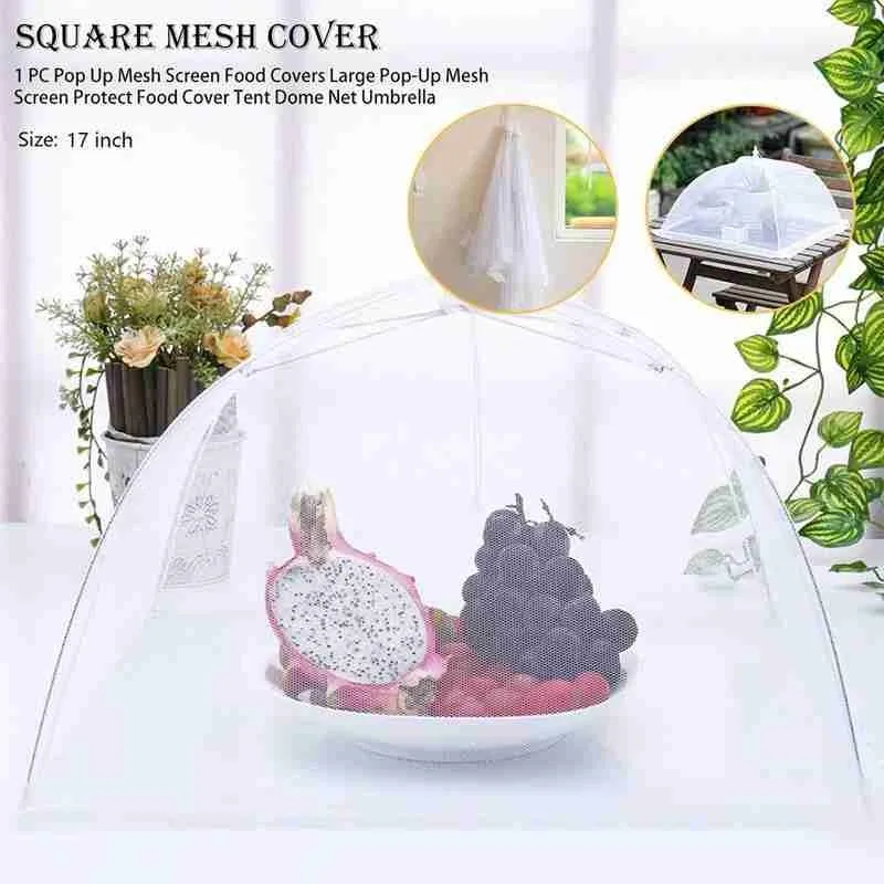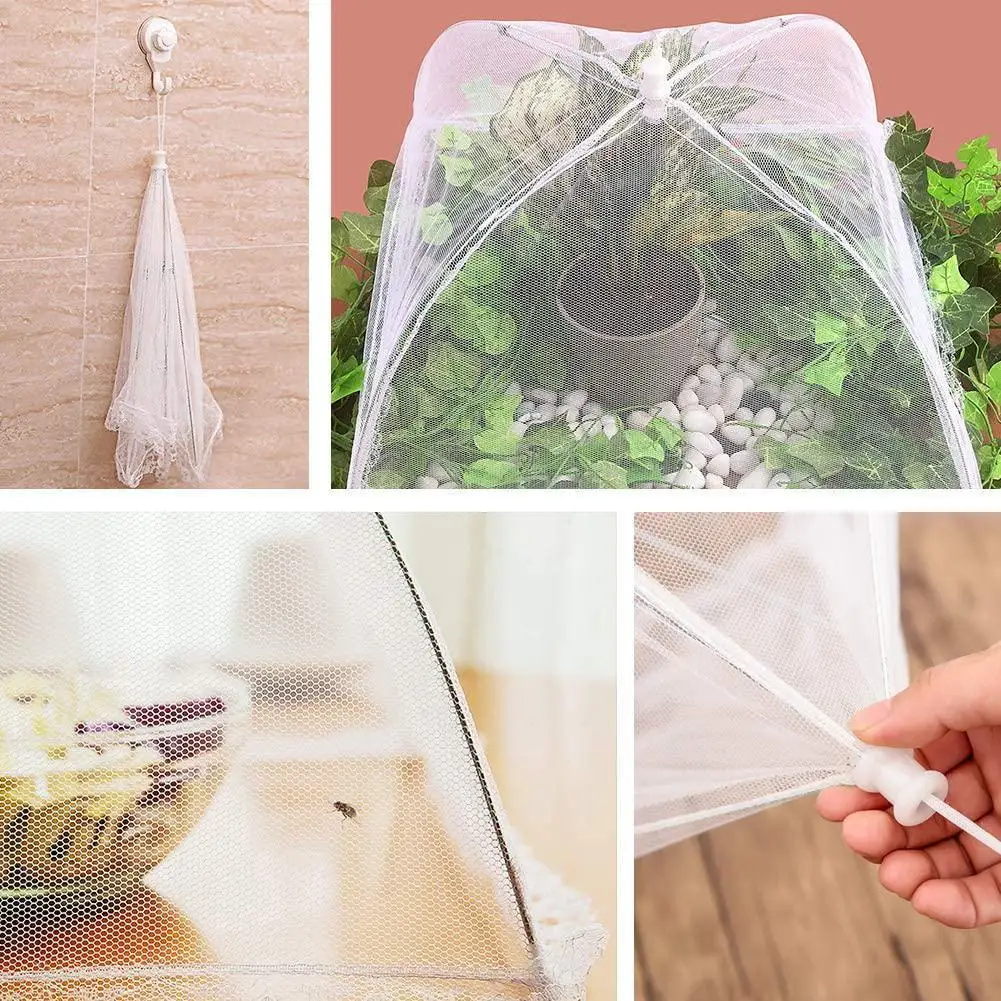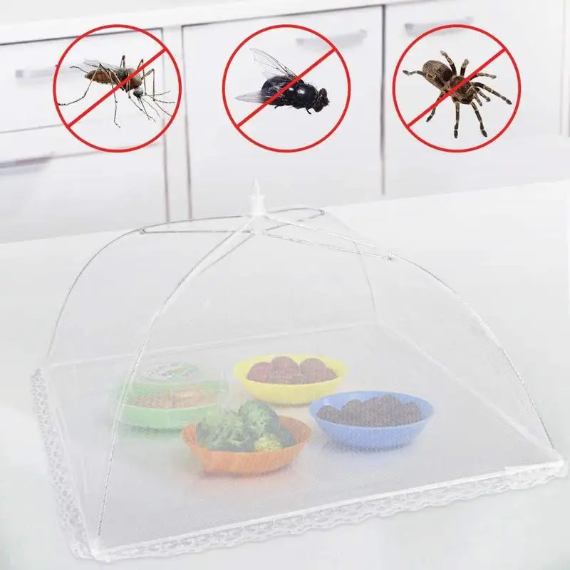 Складной Сетчатый Чехол для стола, Съемный и моющийся протектор от насекомых с зонтиком, кружевной кухонный белый квадратный чехол P9X0
