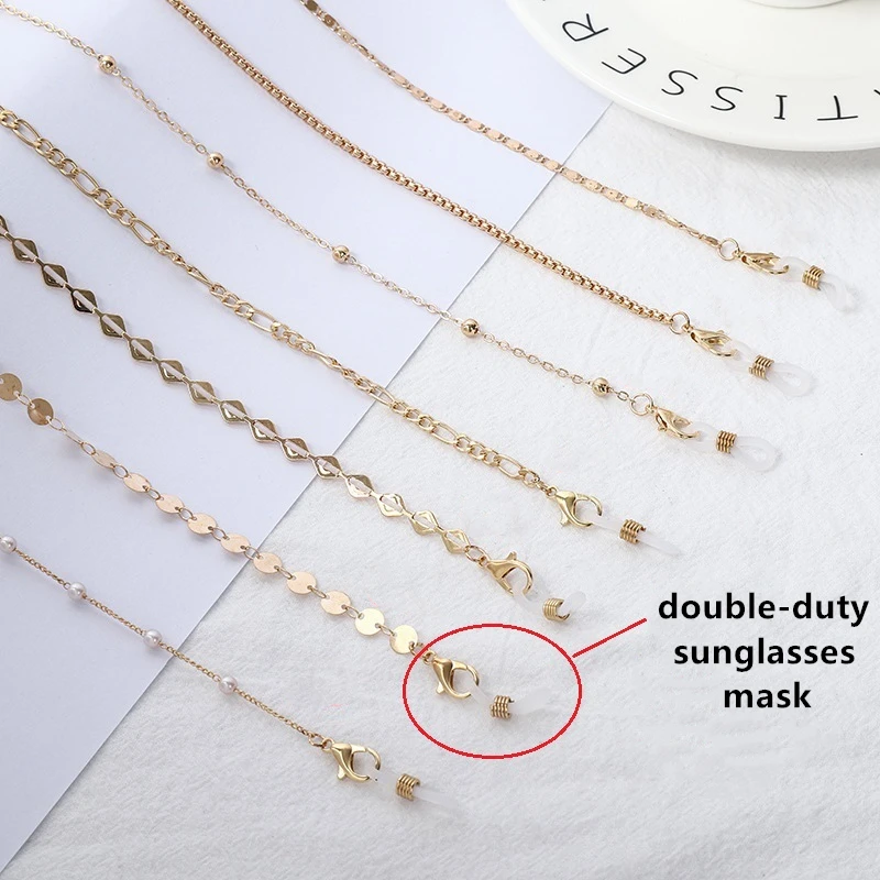 Маска kissme цепочки для солнечных очков для женщин, мужчин, черного, золотого, серебряного цвета, из сплава, с нескользящей цепочкой, 2021
