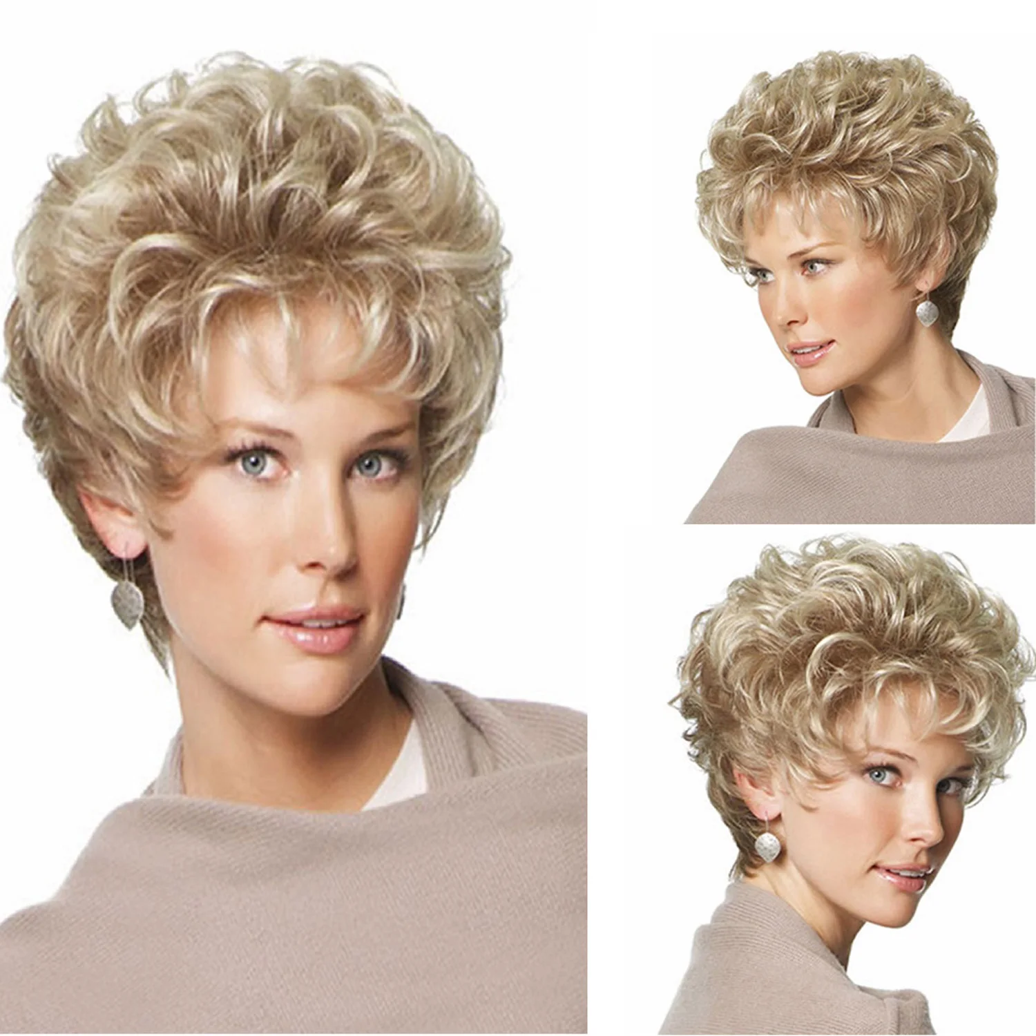 Женский короткий блонд, вьющийся парик, Короткие вьющиеся волосы, п...