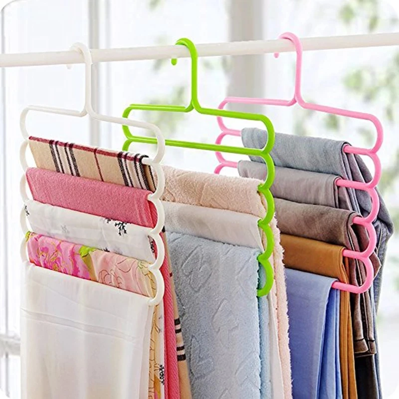 Цветная Пятиярусная вешалка для брюк, многофункциональная вешалка для брюк в гардеробе, вешалка для шарфов и галстуков, предмет для хранения в гардеробе
