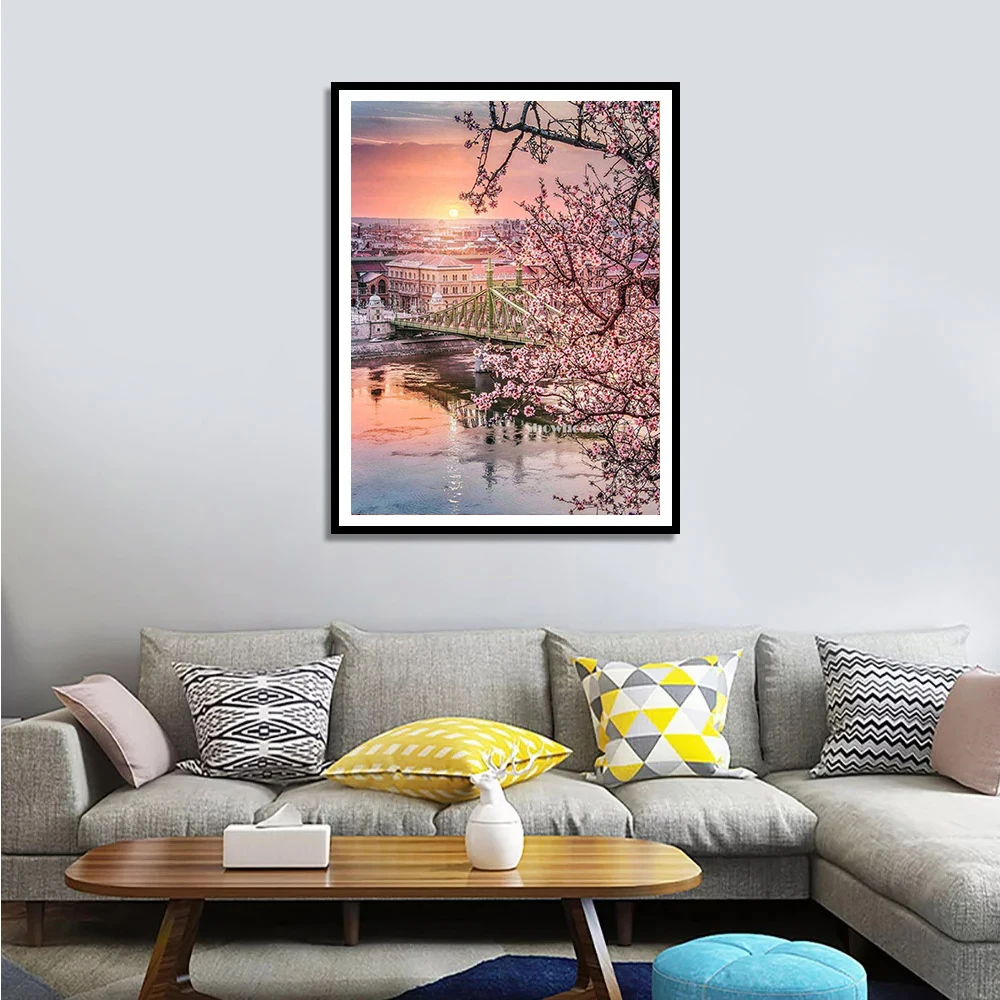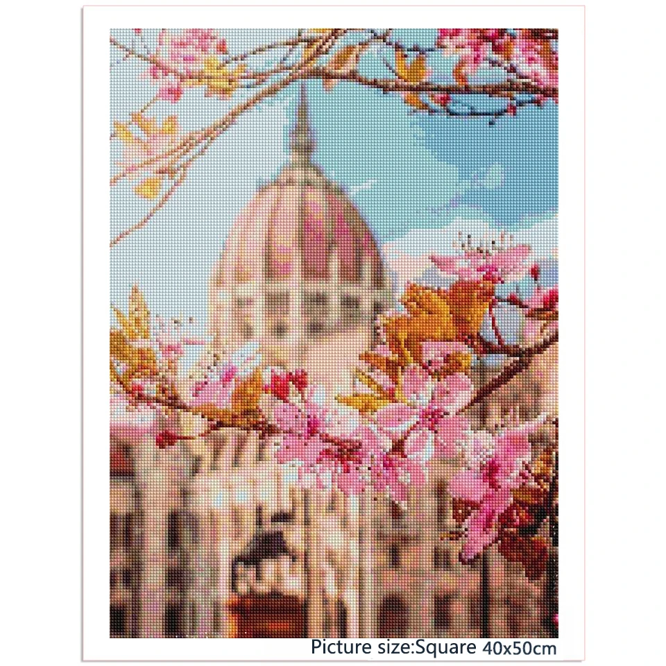 Алмазная 5D картина XUEQIXIAOZU сделай сам, мозаика с цветами вишни, вышивка с весенним цветком, городской ландшафт, украшение для дома