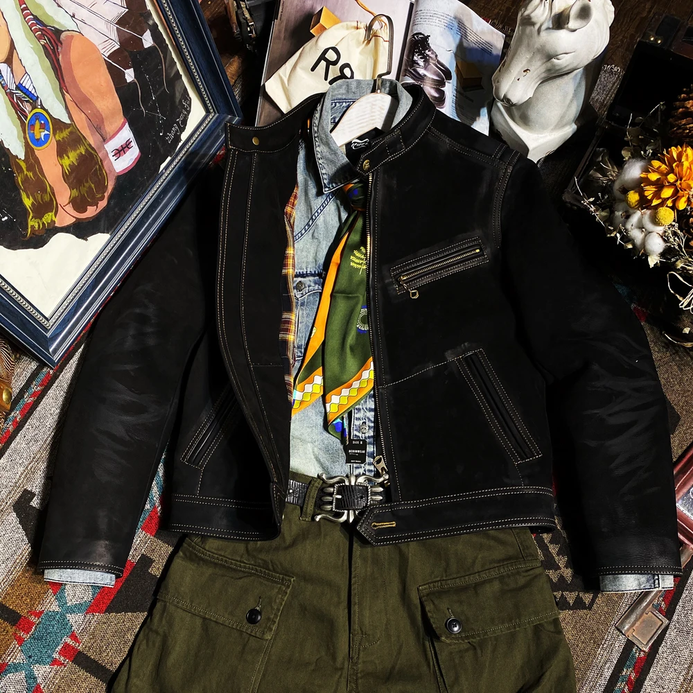 CD958 Азиатский Размер, читайте описание супер качество Натуральная замша коровья кожа тонкая стильная байкерская куртка