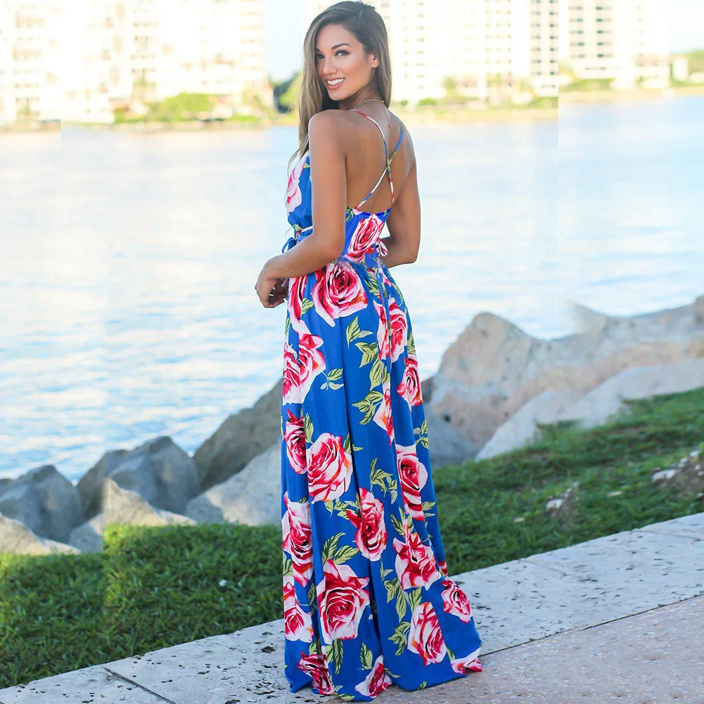 DeRuiLaDy весенне-летнее женское платье 2021 года, платье в богемном стиле ретро с цветочным принтом, сексуальное платье для выпускного с v-образным вырезом, элегантное женское длинное платье без рукавов