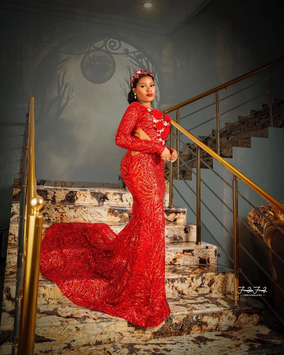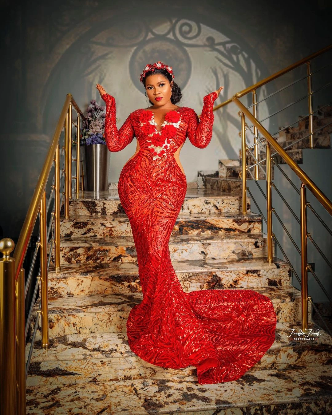 Вечерние платья со шлейфом, блестящие красные платья ручной работы с длинными рукавами и блестками, размера плюс