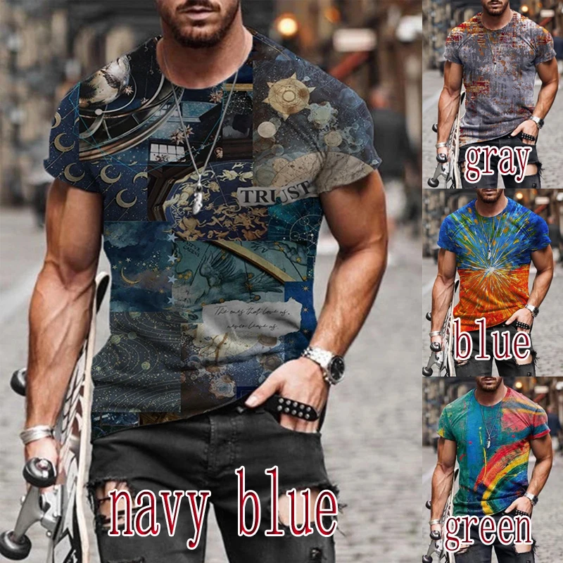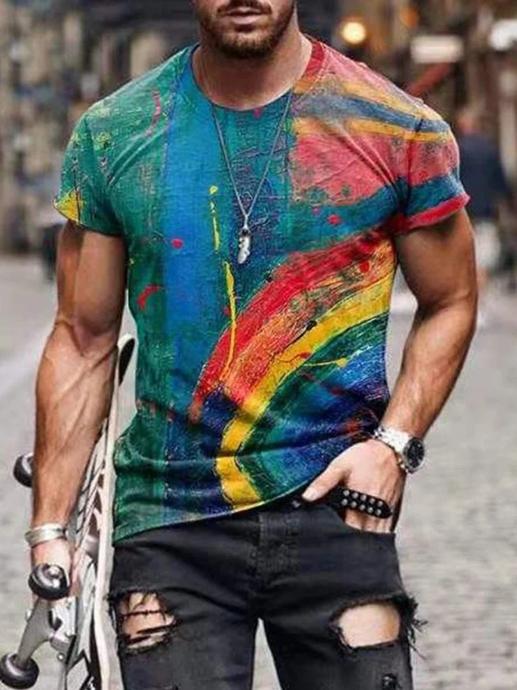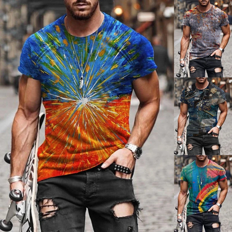 Новые мужские модные повседневные Абстрактная живопись повседневные топы, летние топы с короткими рукавами и круглым вырезом Спортивный футболки размера плюс