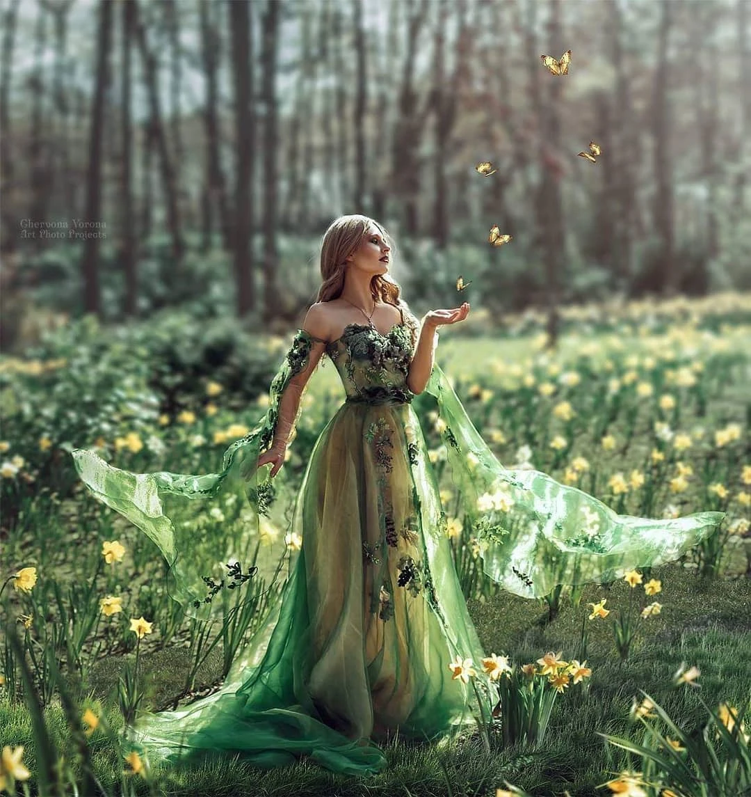 Изумрудно-зеленое платье, выпускные платья, Цветочное платье, женские вечерние платья, сказочное платье джунглей, женское элегантное платье