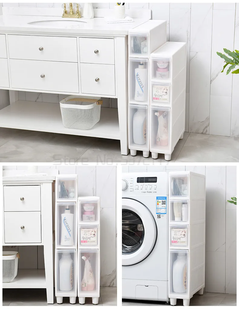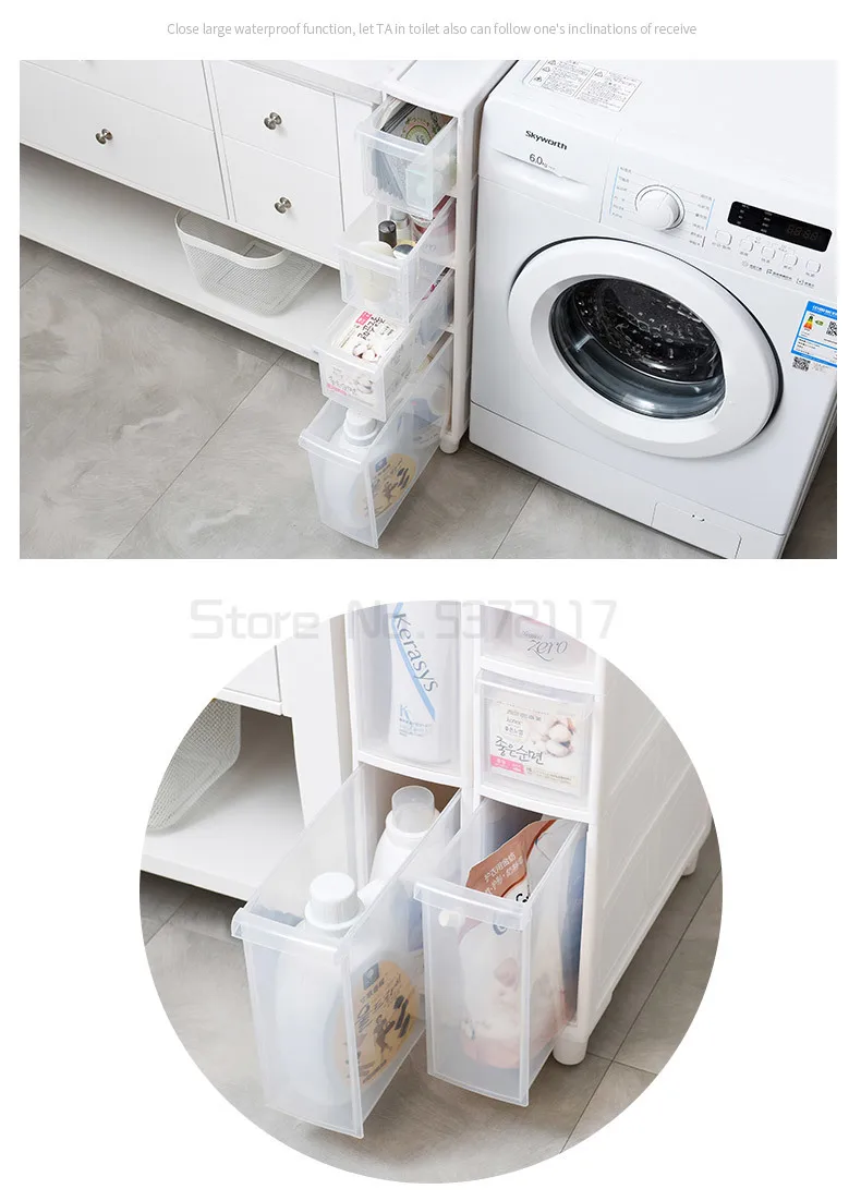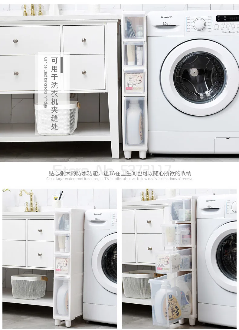 Узкий стеллаж для хранения пластмассовый для хранения в туалете, шкаф для хранения в ванной WF7291100