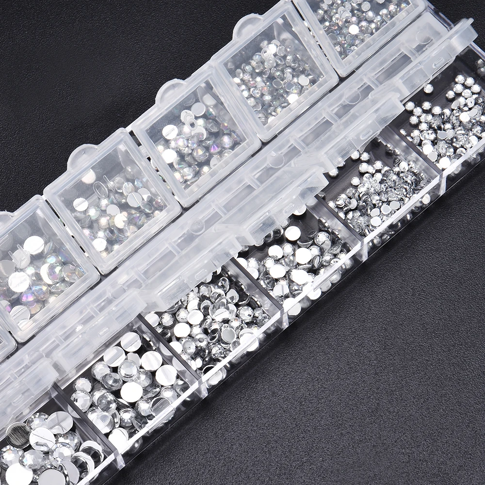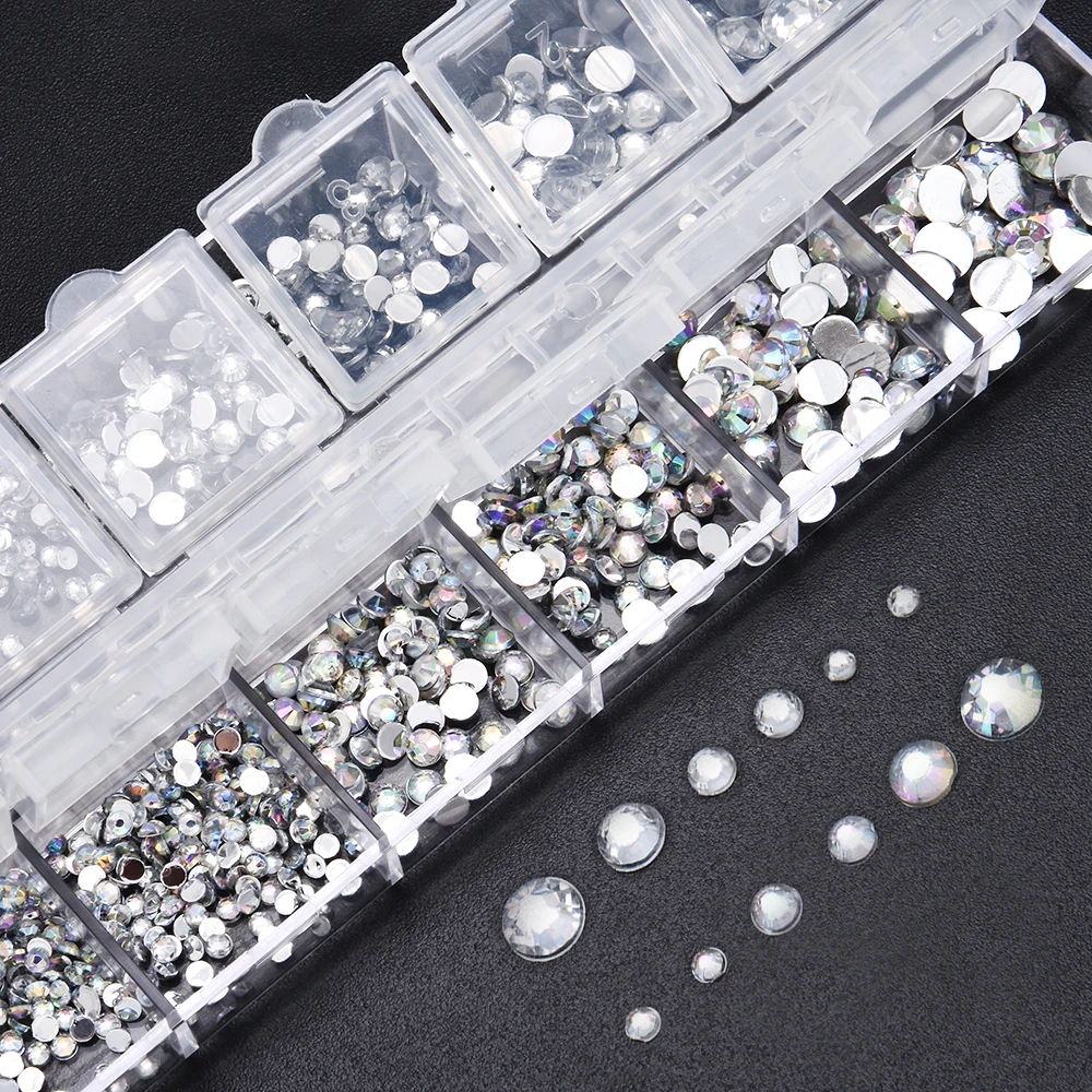 Новинка, стразы разных размеров для ногтей, 3D кристаллы AB, прозрачные украшения для ногтей своими руками, серебряные заклепки, стразы, аксессуары для ногтей