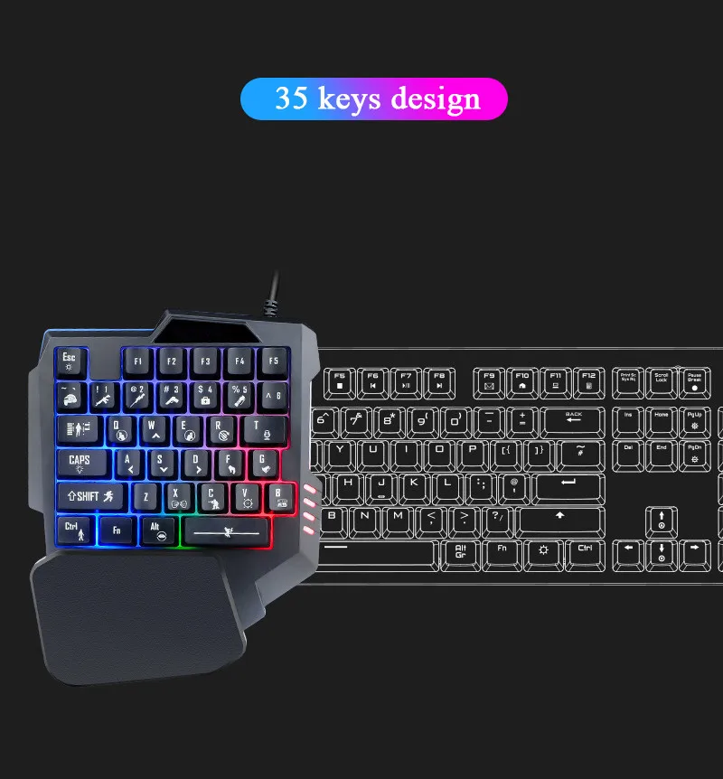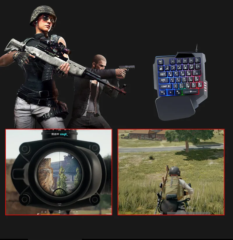 Игровая клавиатура PUBG со штекером и подсветкой, 35 клавиш, ПК, крутая мышь для одной руки, мобильный игровой контроллер светодиодный Ной подсветкой для IOS, Android