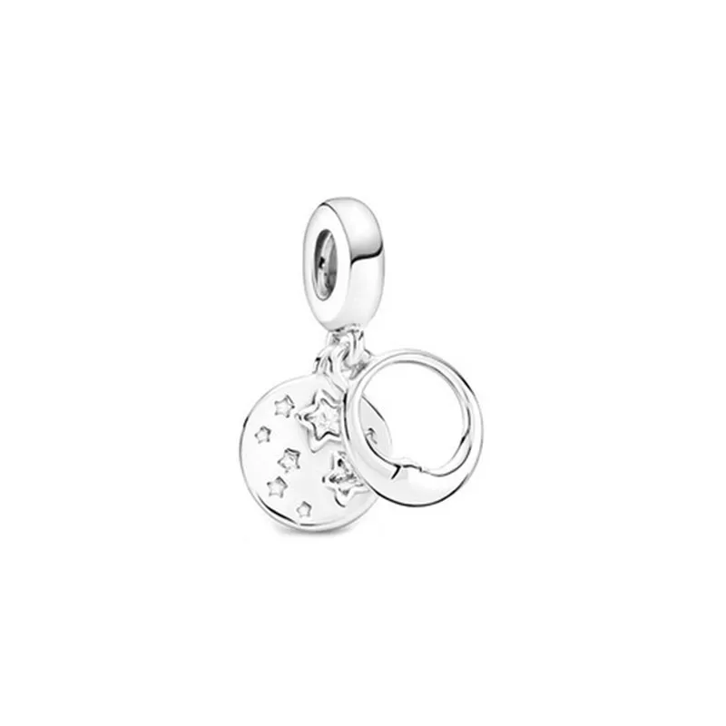 Новый кастрюля из натуральной 925 Серебряная корона вентилятор Луна звездное небо кулон подходит для натуральная Пандора браслет для женщин ювелирные изделия