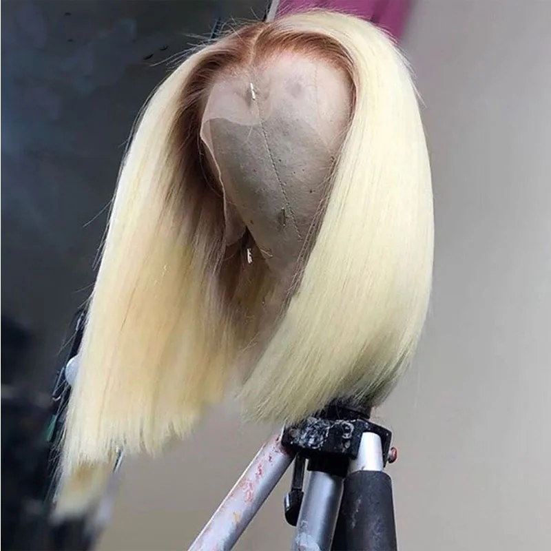 Парики женские прямые светлые с эффектом деграде, короткие, с естественной линией волос