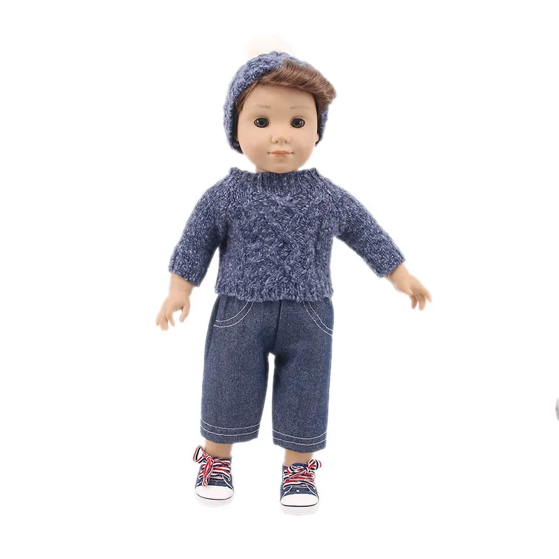 Одежда для кукол 2 шт.компл., свитер, джинсовая обувь, подходит для 18-дюймовых американских девочек 43 см, кукла для новорожденных
