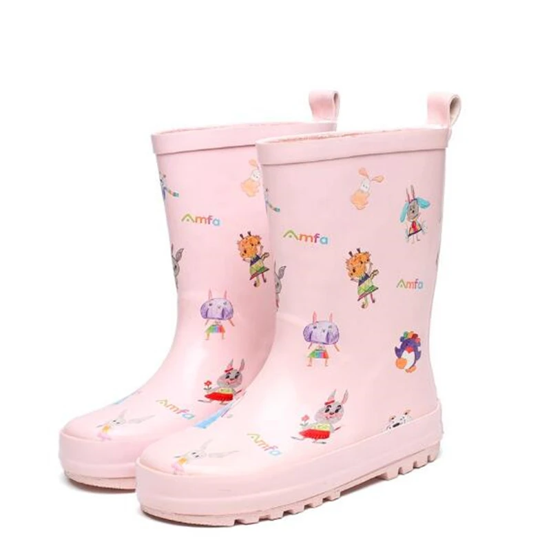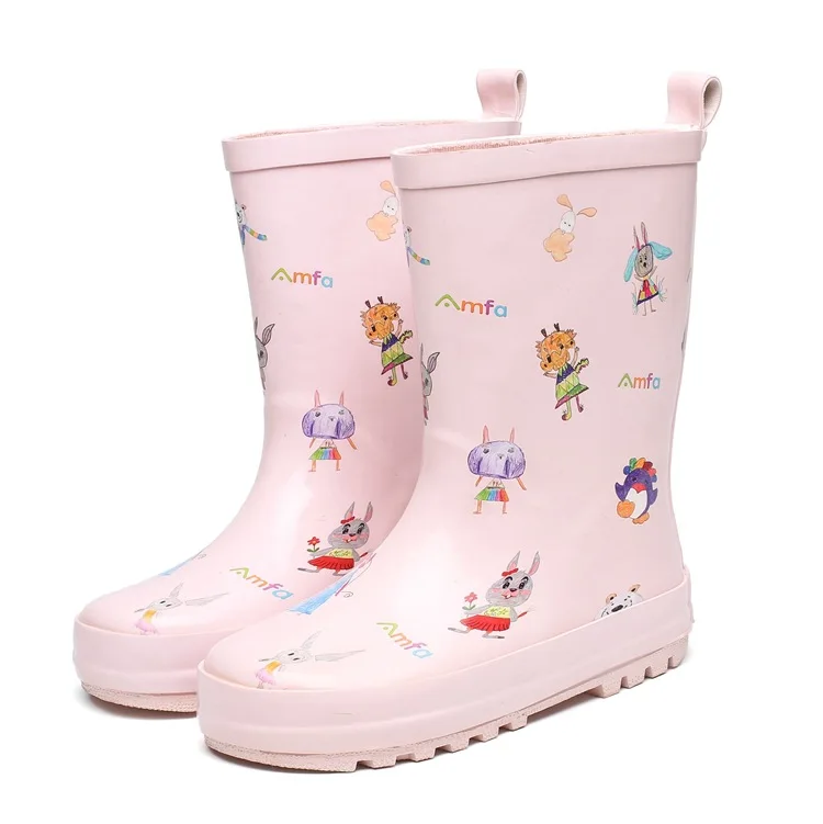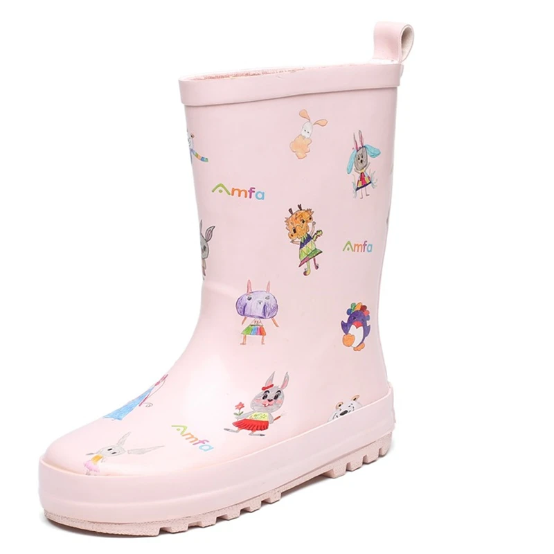 Сапоги детские резиновые, высокие, Нескользящие, из ПВХ, розовые, черные, 041