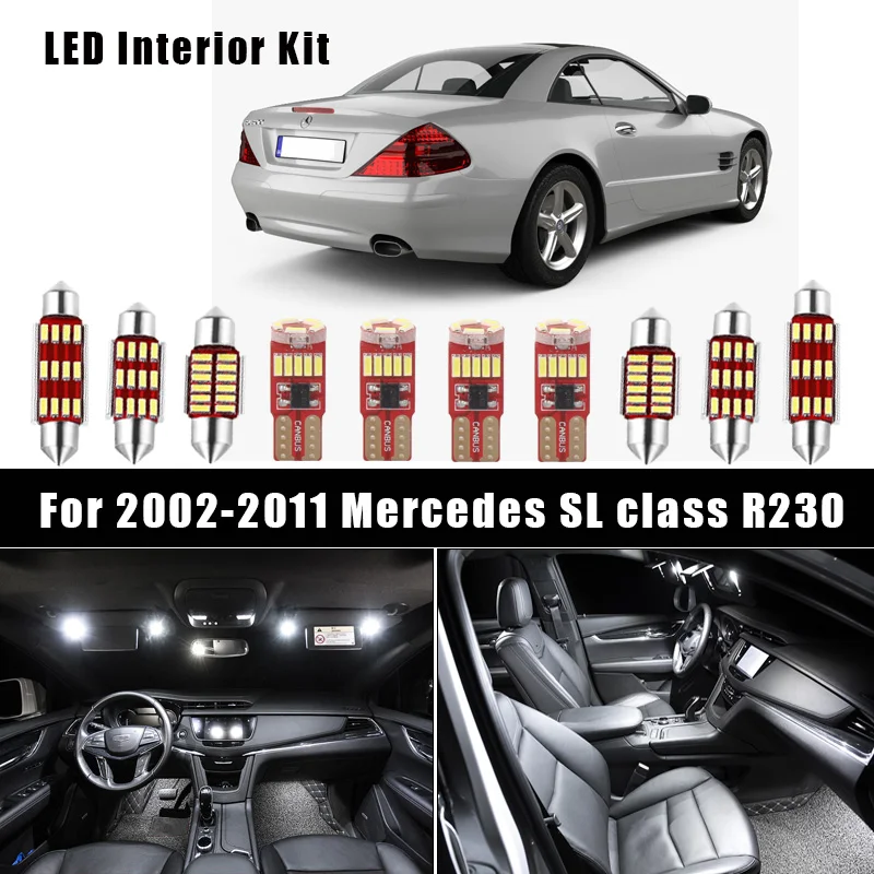 11 шт. светодиодная интерьерная с Canbus Купол Карта багажник светильник набор для Mercedes для 2002-2011 Mercedes-Benz SL класс R230 SL350 SL600 SL55 AMG